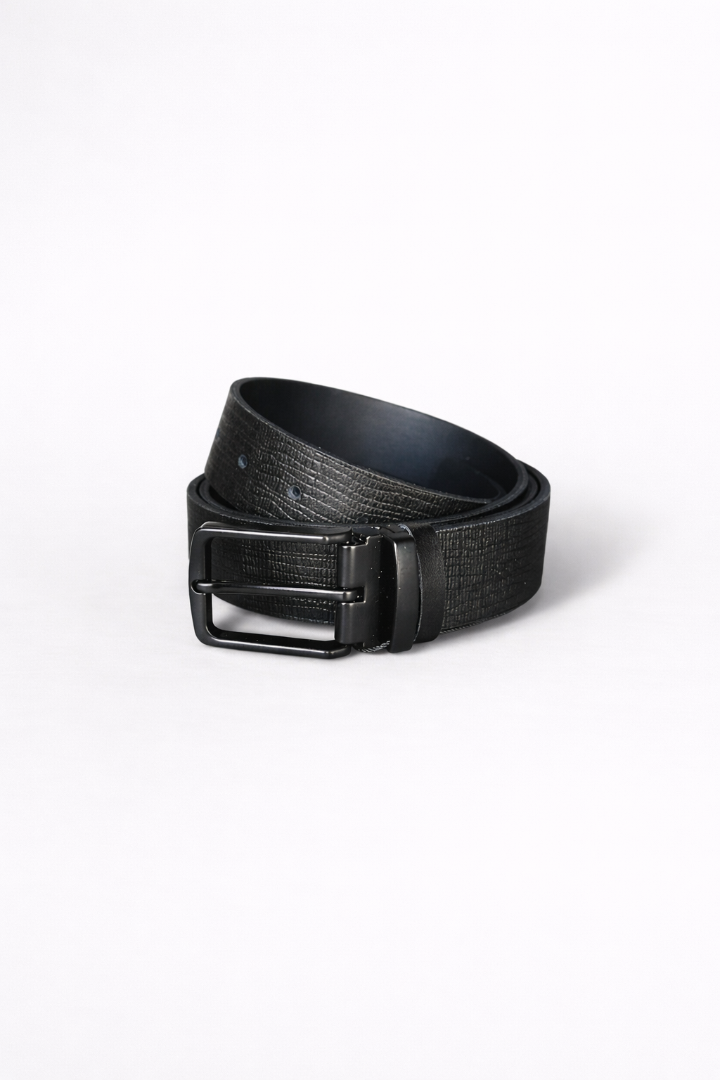 Δερμάτινη ζώνη με ανάγλυφη επιφάνεια χρώματος μαύρο και μαύρη μεταλική αγκράφα.
