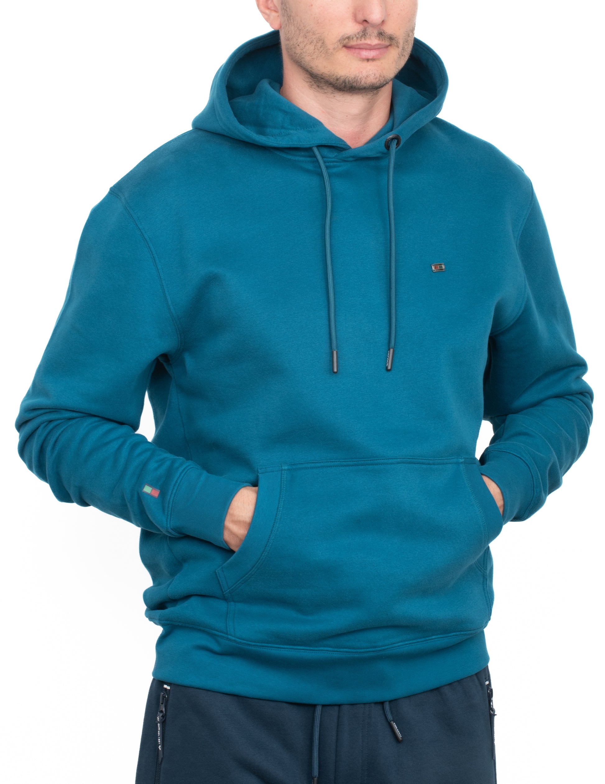 Βαμβακερό φούτερ με κουκούλα σε κανονικη γραμμή.Διαθέσιμα 3 χρώματα , κυπαρισσί co.2,μπορντό co.7,πετρόλ co.9