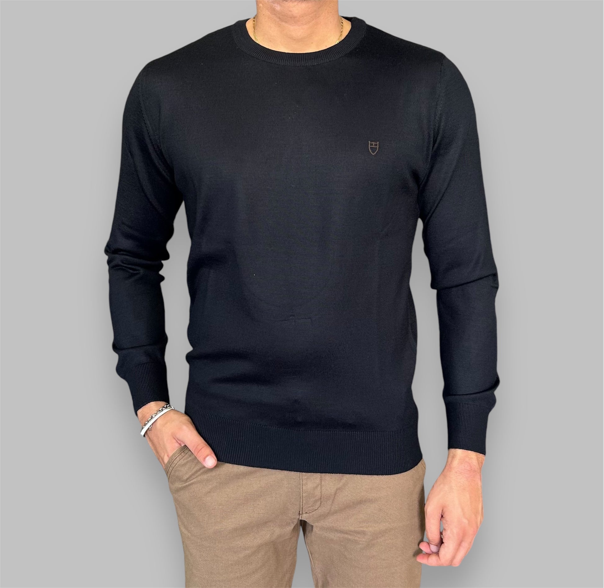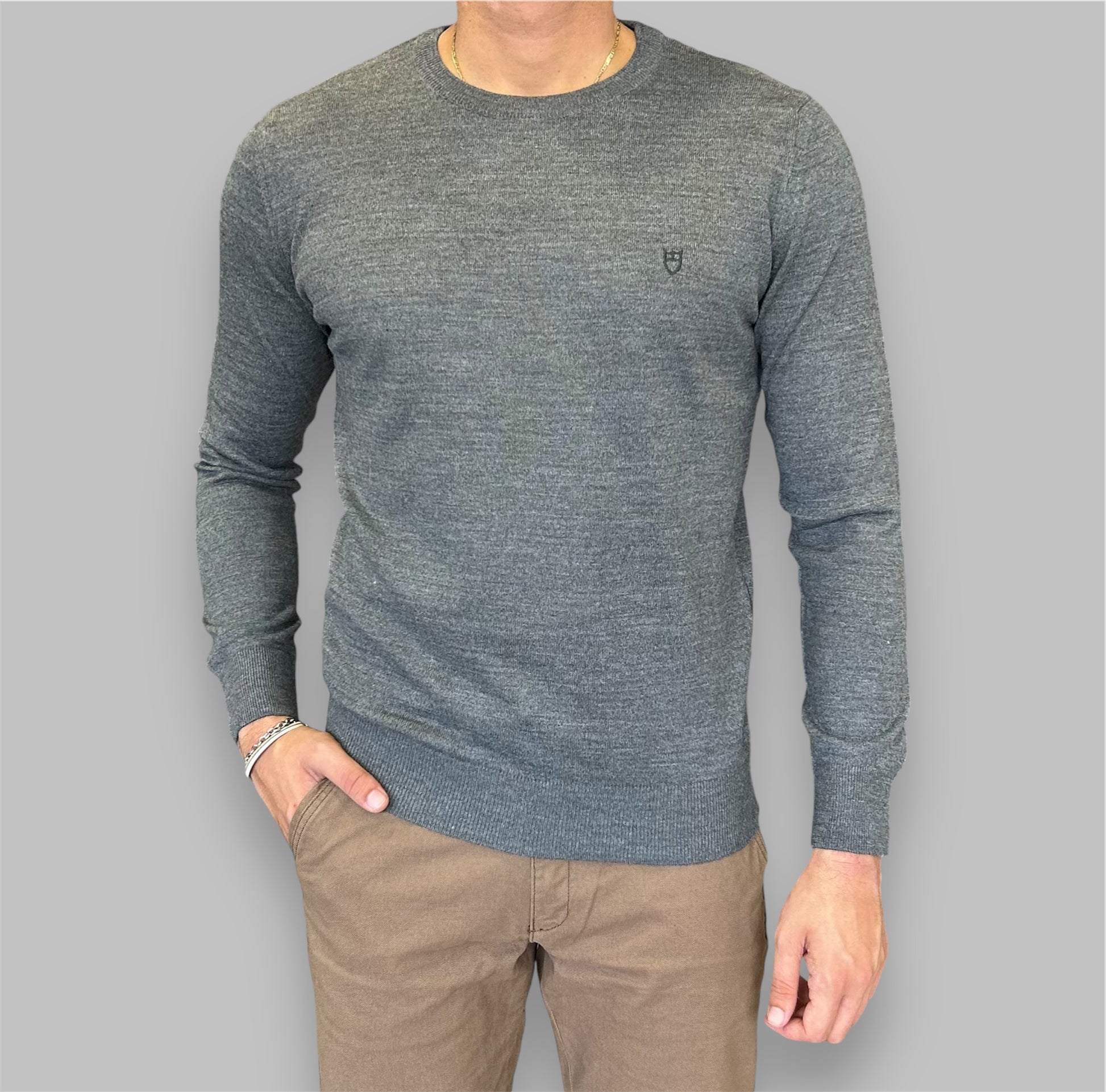 Μάλλινη μπλούζα σε κανονική γραμμή με λαιμόκοψη,διαθεσιμη σε γκρι και μπλε.