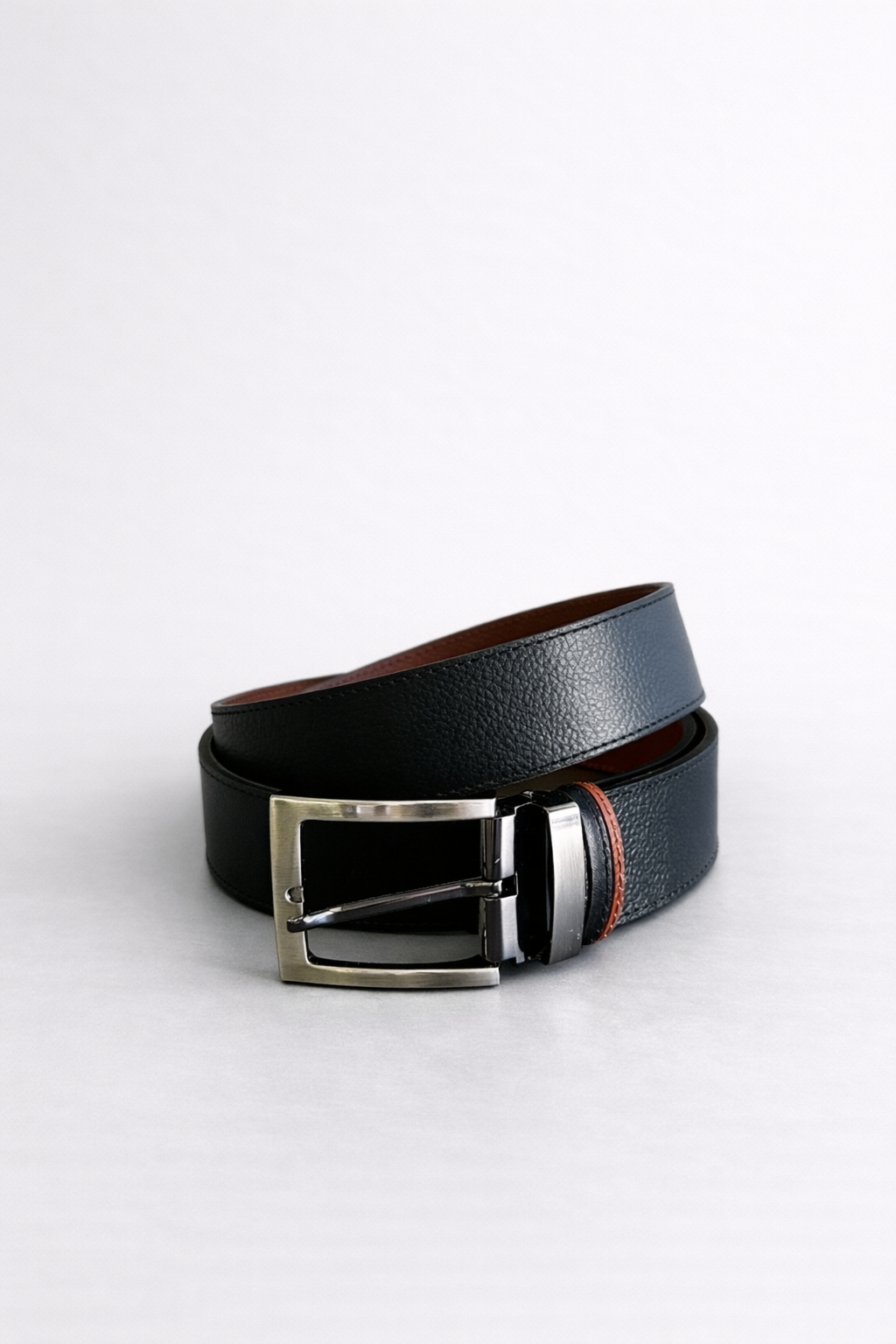 Δερμάτινη ζώνη διπλής όψης καφέ και μπλε αποχρωσεων με αποσπώμενη αγκράφα για να την φοράτε ανάλογα με το ντύσιμο σας.MADE IN GREECE