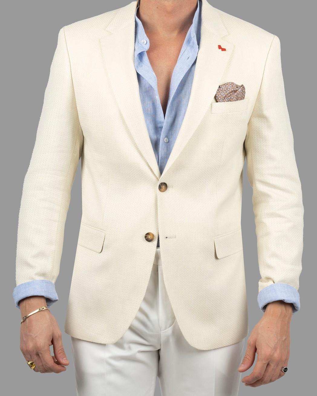 Εκρού σακάκι με μικροσχεδιο ψαροκόκαλο σε στενή γραμμή.