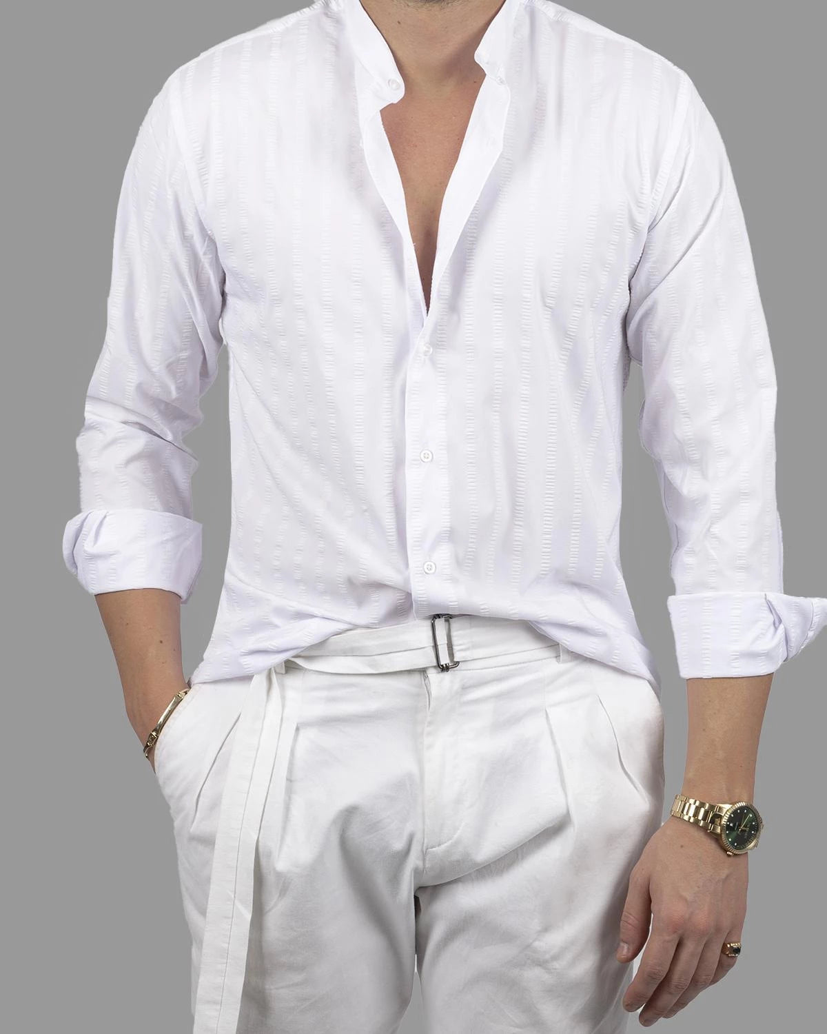 Λευκό μαο πουκάμισο με γκοφρέ ρίγες σε στενή γραμμή.