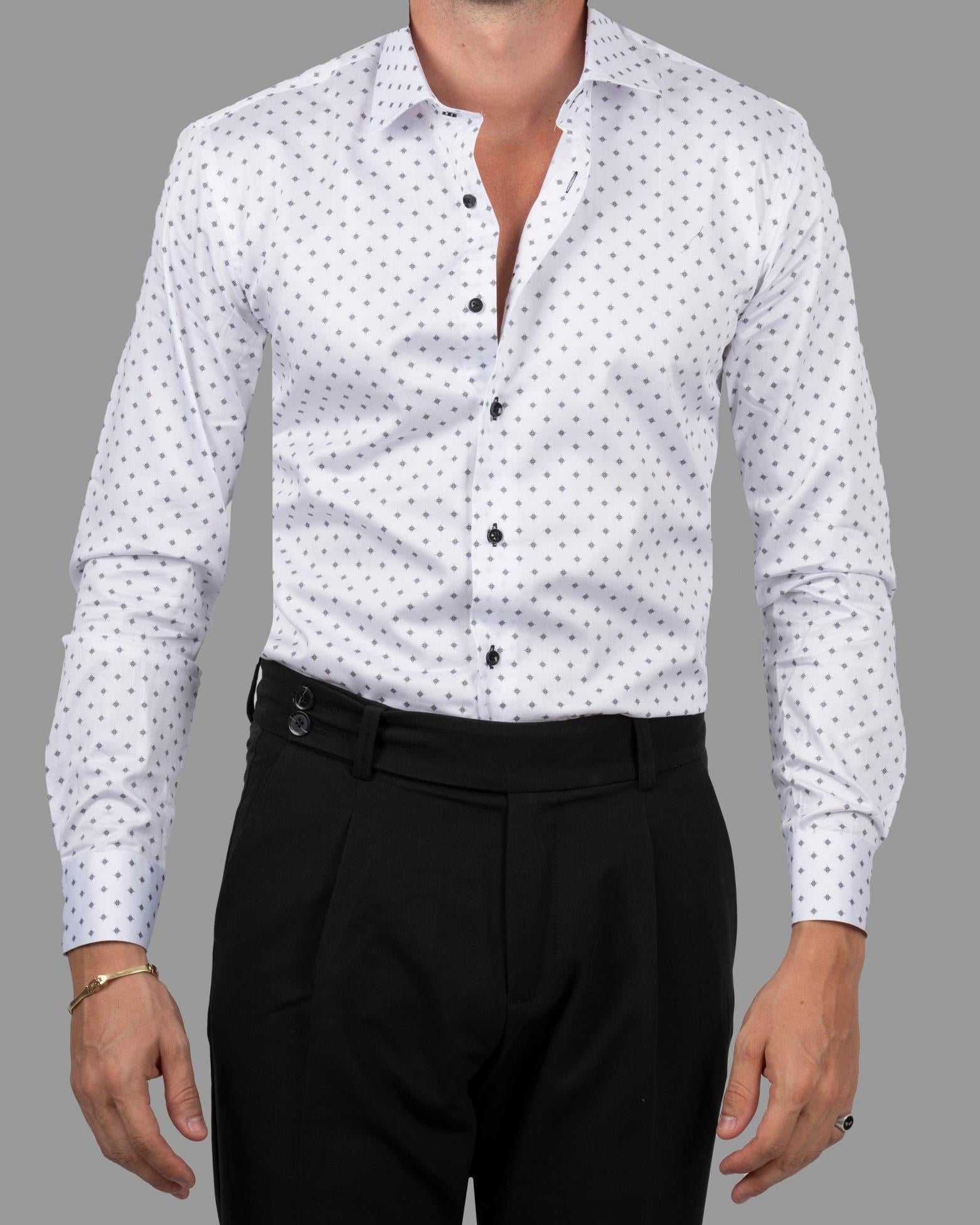 Λευκό πουκάμισο με μαύρο μικροσχέδιο σε στενή γραμμή.