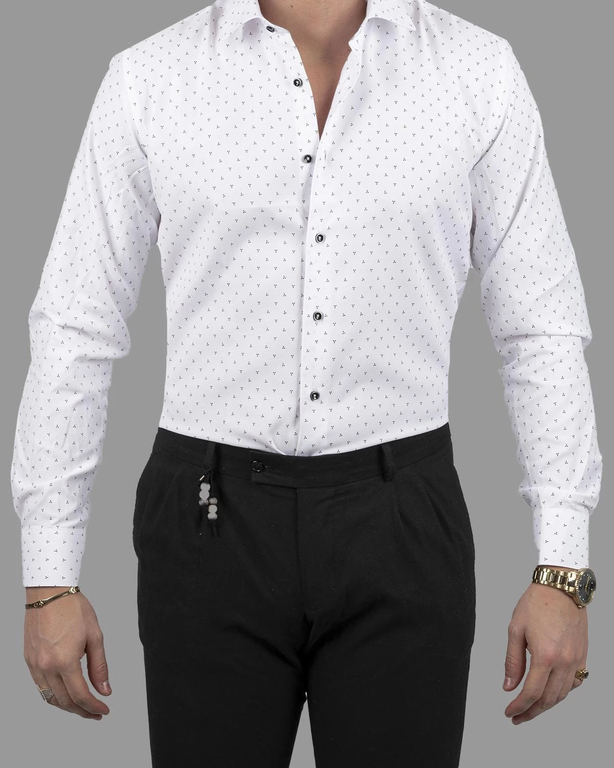 Λευκό πουκάμισο με μαύρο μικροσχέδιο σε στενή γραμμή.