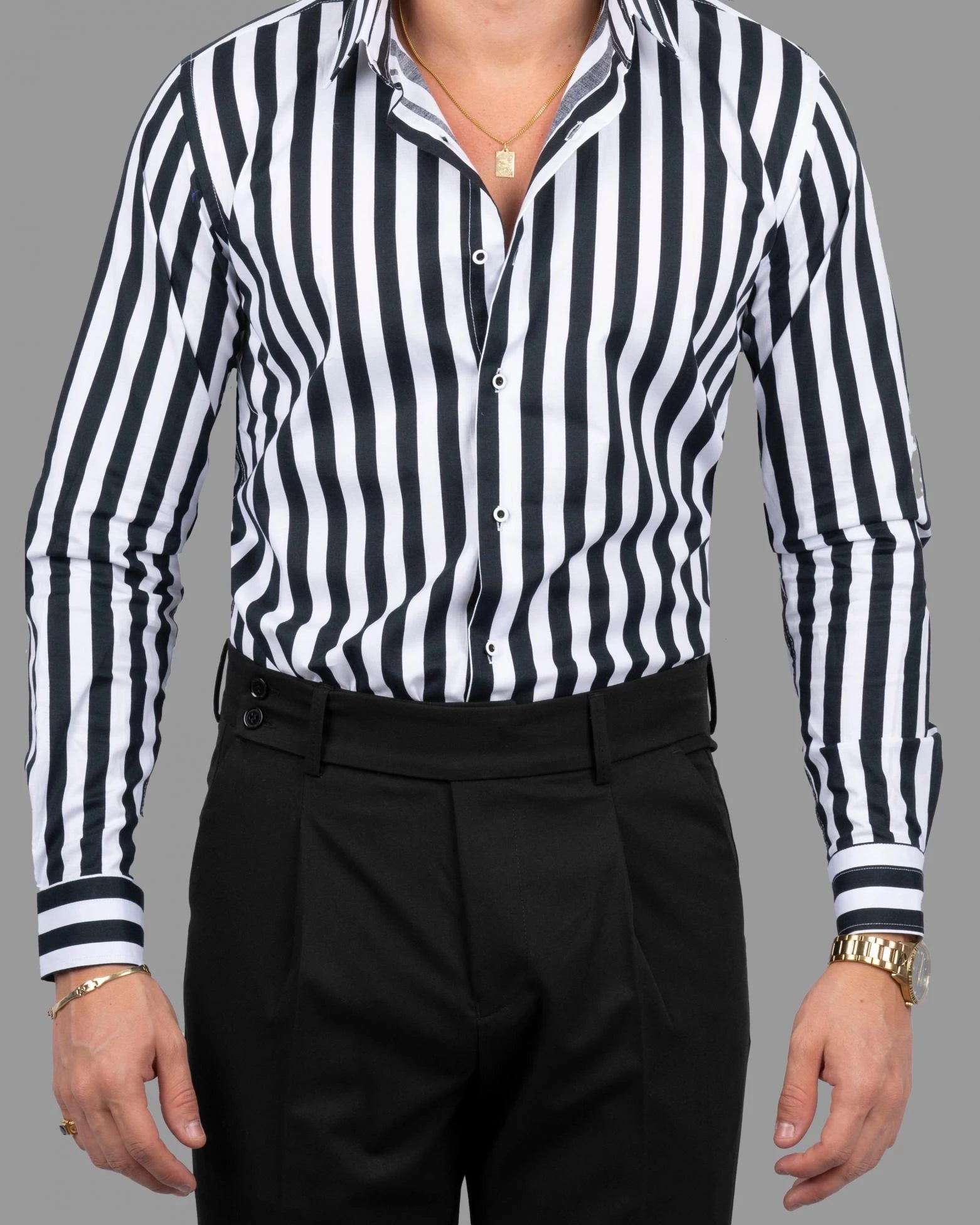 Λευκό πουκάμισο με μαύρες ρίγες σε στενή γραμμή.