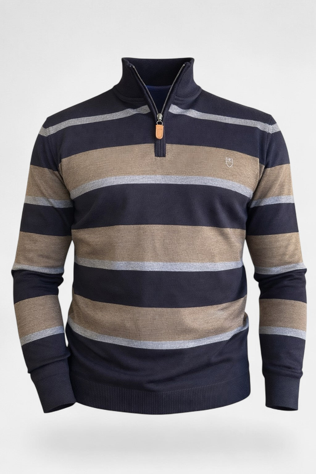 Κομψό πλεκτό από 100% μαλλί Merino, εξαιρετικά απαλό και ανάλαφρο, με half-zip γιακά που προσφέρει διαχρονικό στυλ και πρακτικότητα. Κανονική γραμμή για άνετη εφαρμογή και υψηλή αισθητική, ιδανικό για smart casual και business looks.