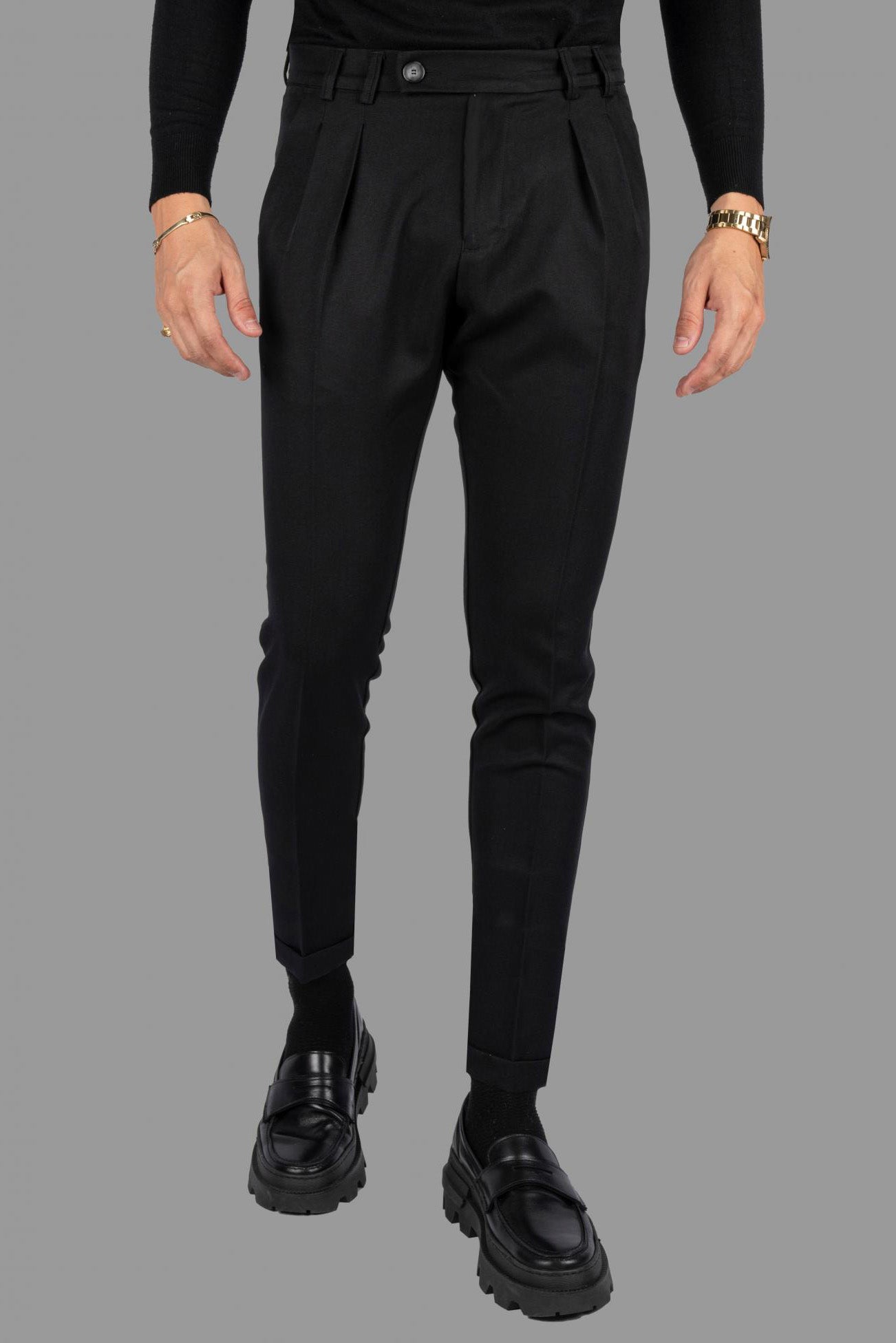 Μαύρο παντελόνι σε στενή γραμμή με διπλή πιέτα.Ενα διαχρονικό στυλ που πάντα υπήρχε και θα υπάρχει.