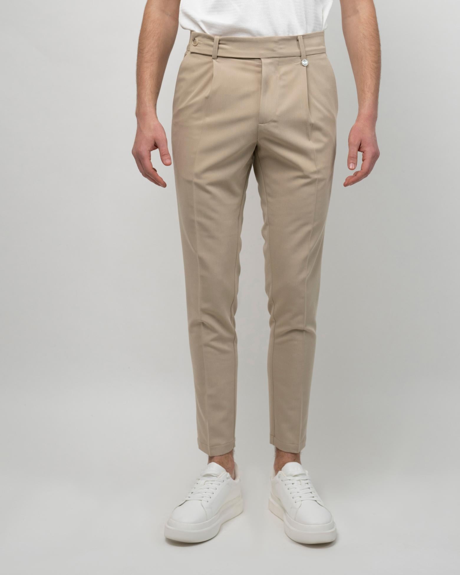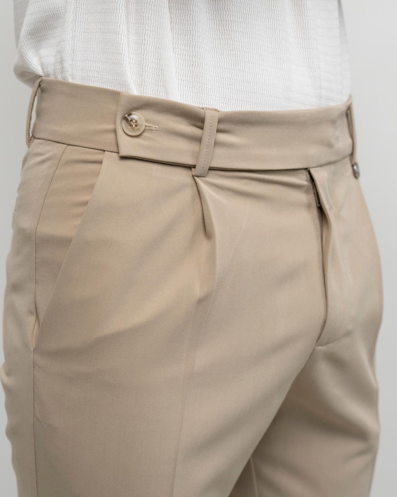 Μπεζ ελαστικό παντελόνι σε στενή γραμμή με πιέτα.