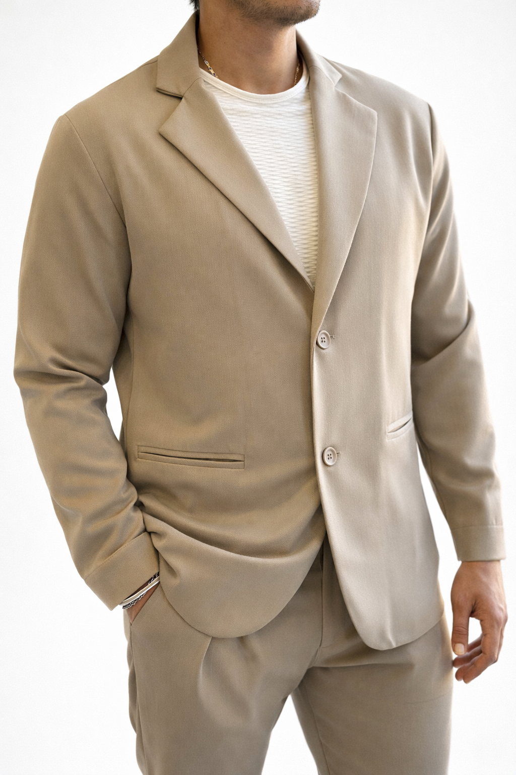 Απλό, κομψό και άνετο. Ένα ελαφρύ σακάκι σε ουδέτερο μπεζ, σχεδιασμένο για όσους θέλουν να ντύνονται προσεγμένα χωρίς υπερβολές. Το ελαστικό του ύφασμα προσφέρει ελευθερία κινήσεων και άνεση καθ’ όλη τη διάρκεια της ημέρας. Ιδανικό για καθημερινή χρήση ή πιο smart εμφανίσεις χωρίς την αυστηρότητα του κλασικού σακακιού.