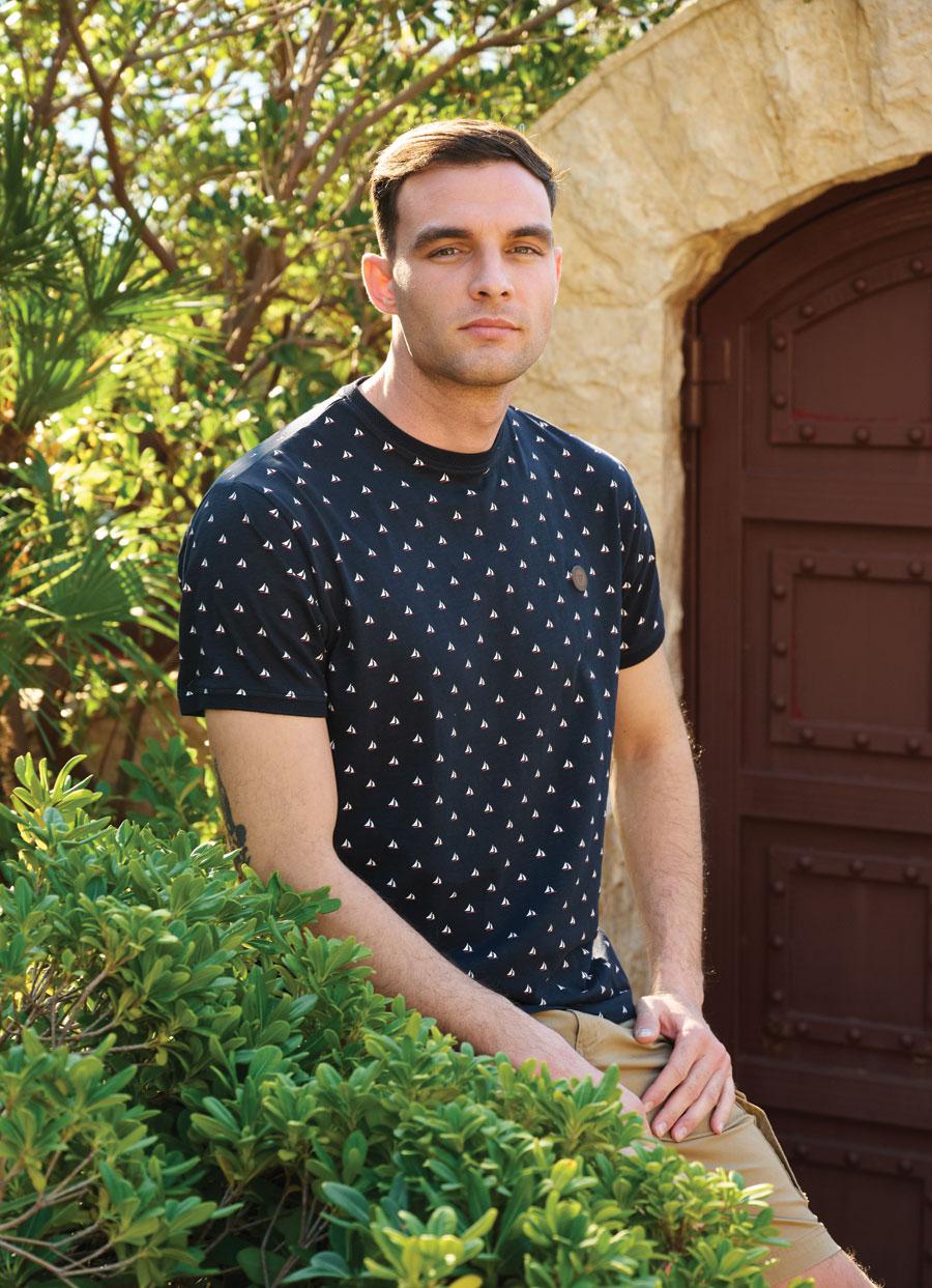 Μπλε t-shirt με λαιμόκοψη,100% βαμβάκι σε κανονική προς φαρδιά γραμμή.