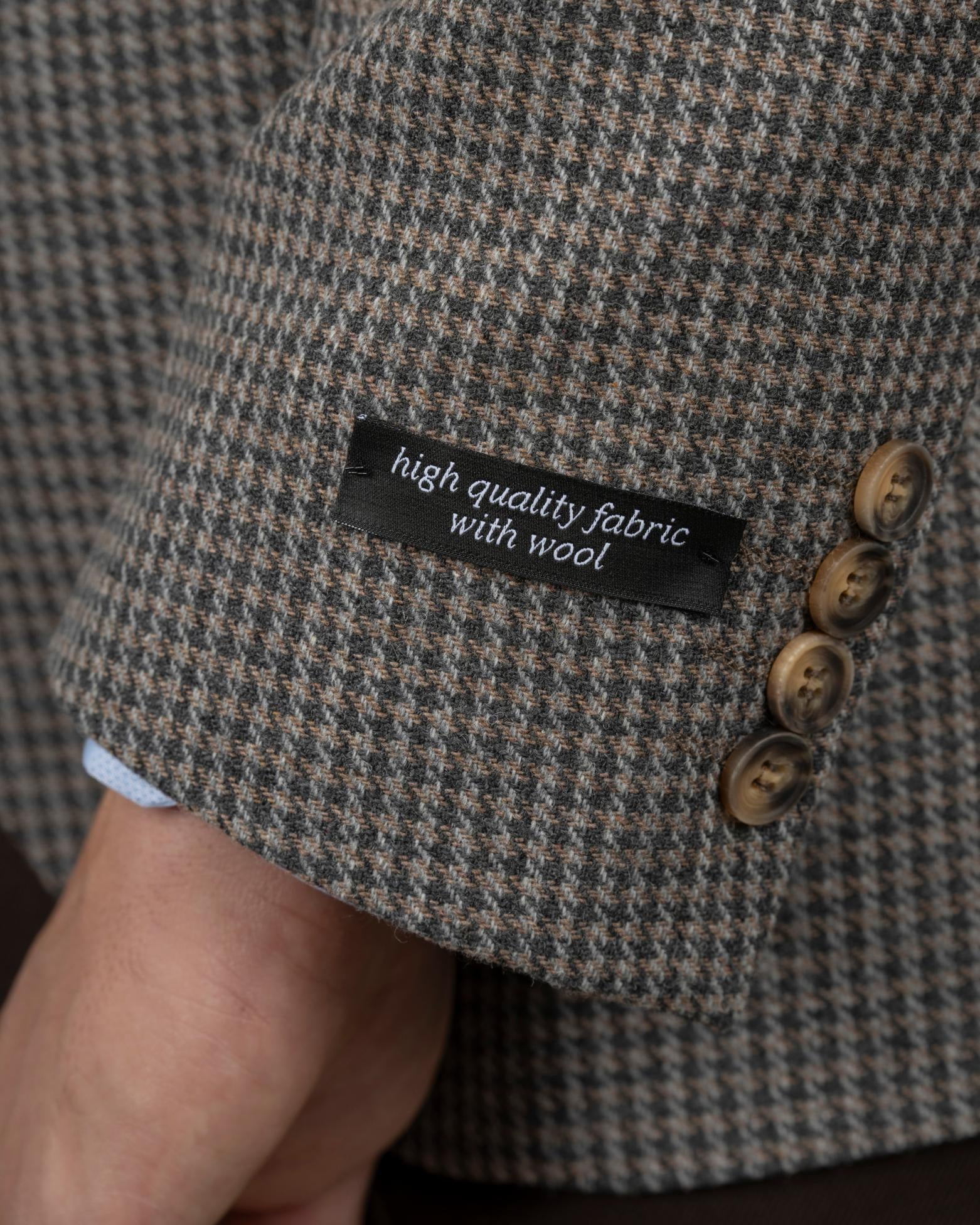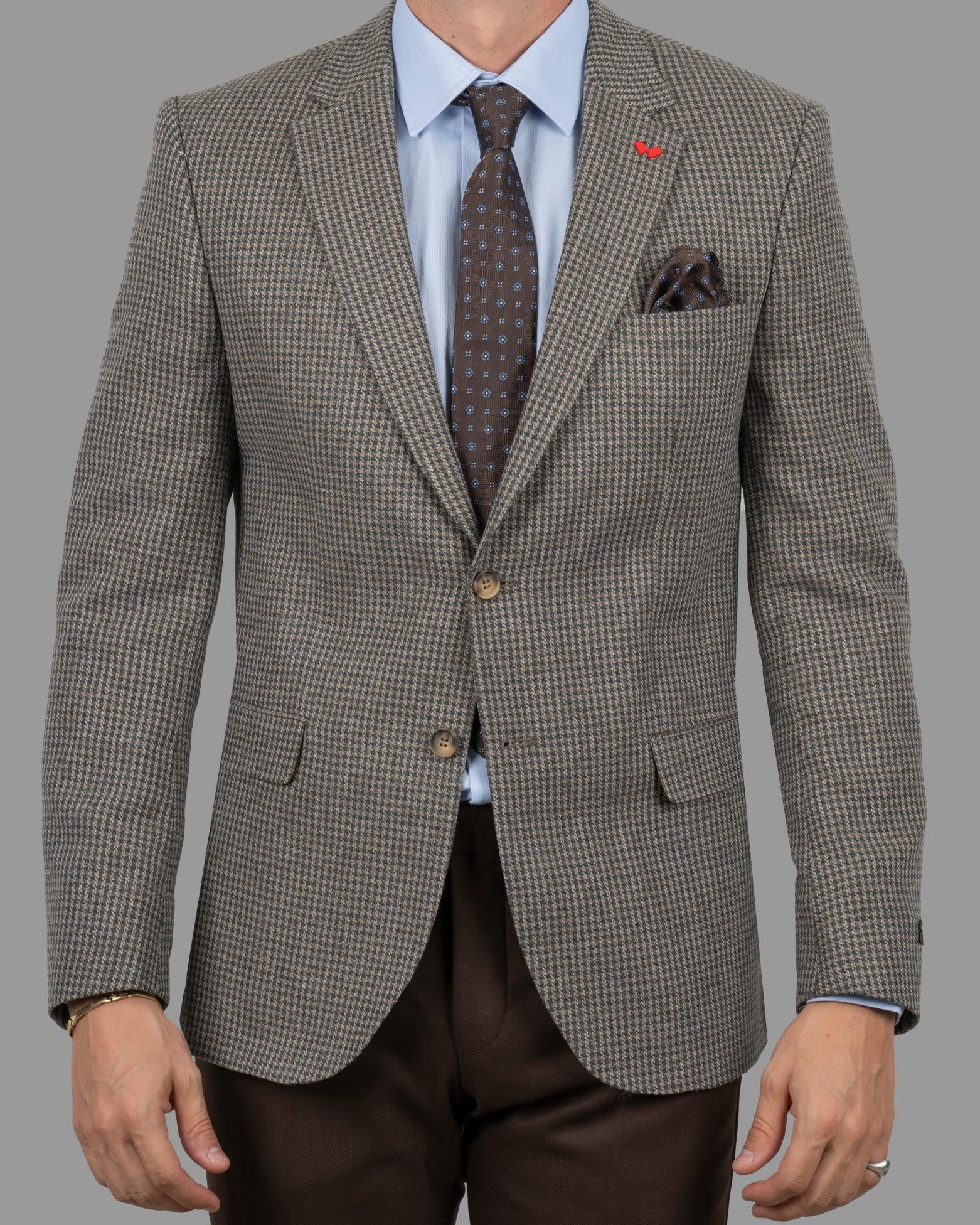 Κατασκευασμένο από υψηλής ποιότητας μαλλί, διασφαλίζει ζεστασιά και άνεση, ενώ το διακριτικό σχέδιο pied de poule προσθέτει μια πινελιά διαχρονικής κομψότητας. Είναι η ιδανική επιλογή για επίσημες ή ημιεπίσημες περιστάσεις, προσφέροντας άψογο στυλ σε κάθε έξοδο.