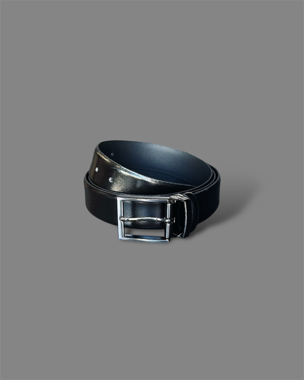 Δερμάτινη ζώνη χρώματος μαύρο με ελαφρώς γυαλιστερή επιφάνεια και gun metal αγκράφα.