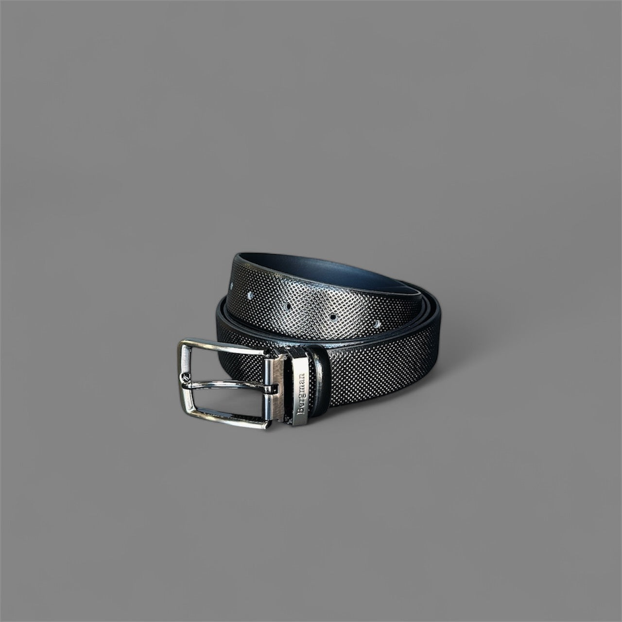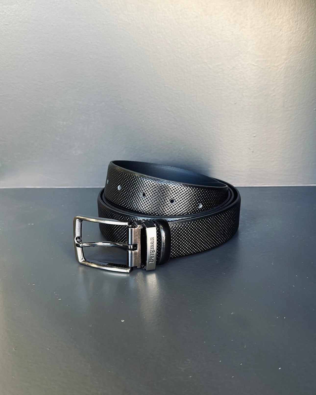 Δερμάτινη ζώνη με ανάγλυφη επιφάνεια χρώματος μαύρο και gun metal αγκράφα.