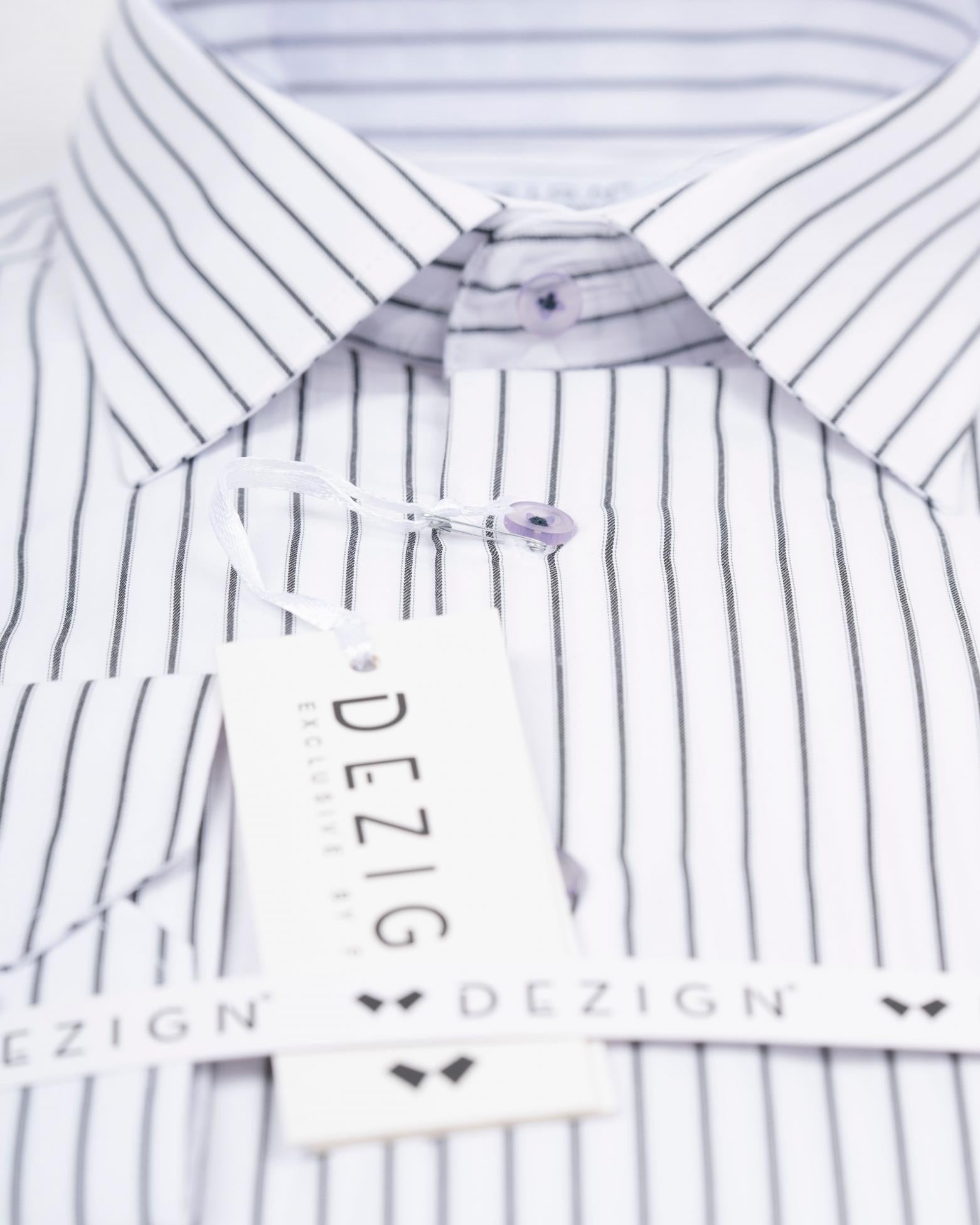 Λευκό πουκάμισο με μαύρη ρίγα σε κανονική γραμμή.