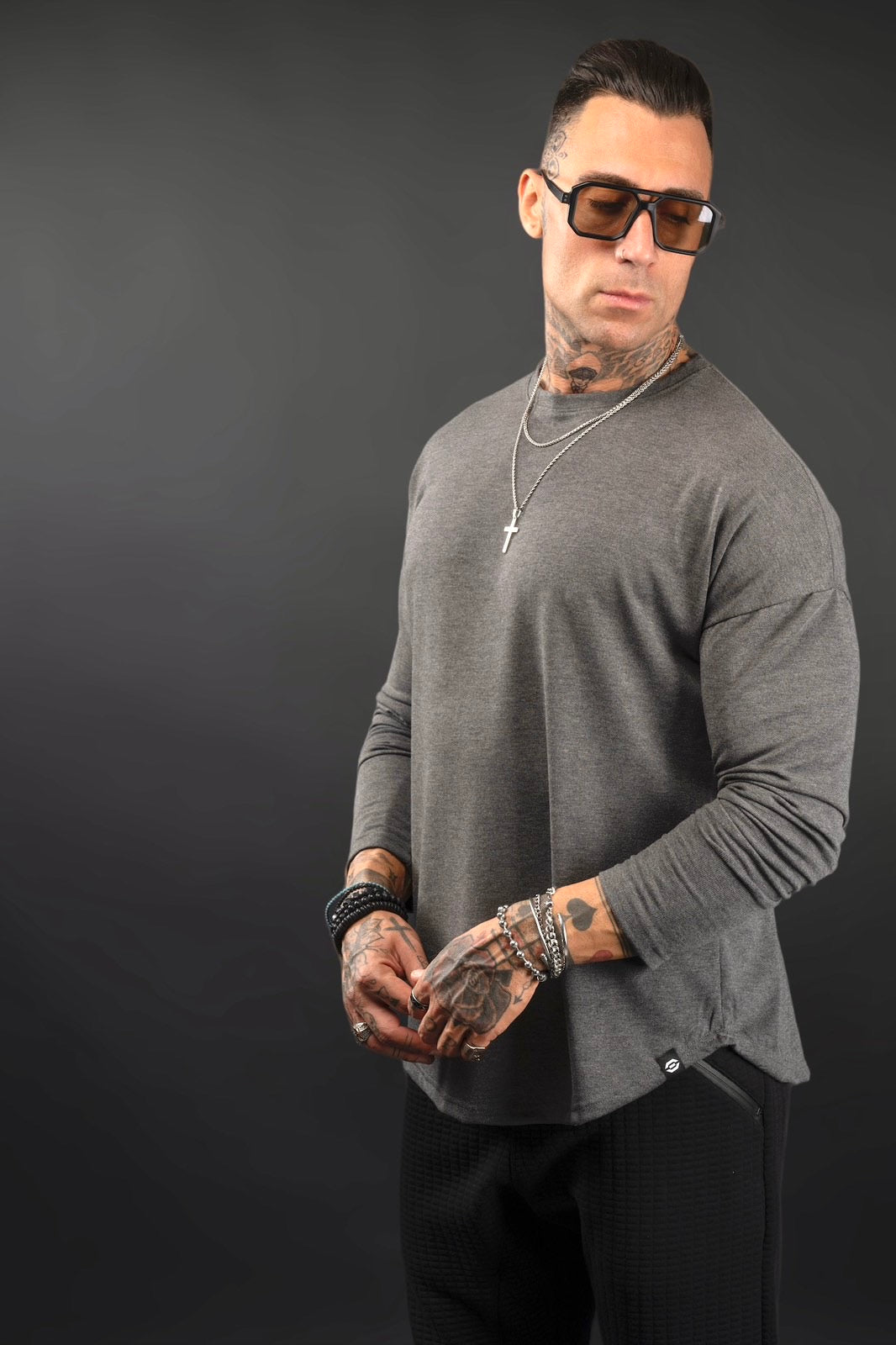 Γκρι μακρυμάνικη μπλούζα σε μοντέρνο ύφος και slim fit γραμμή.