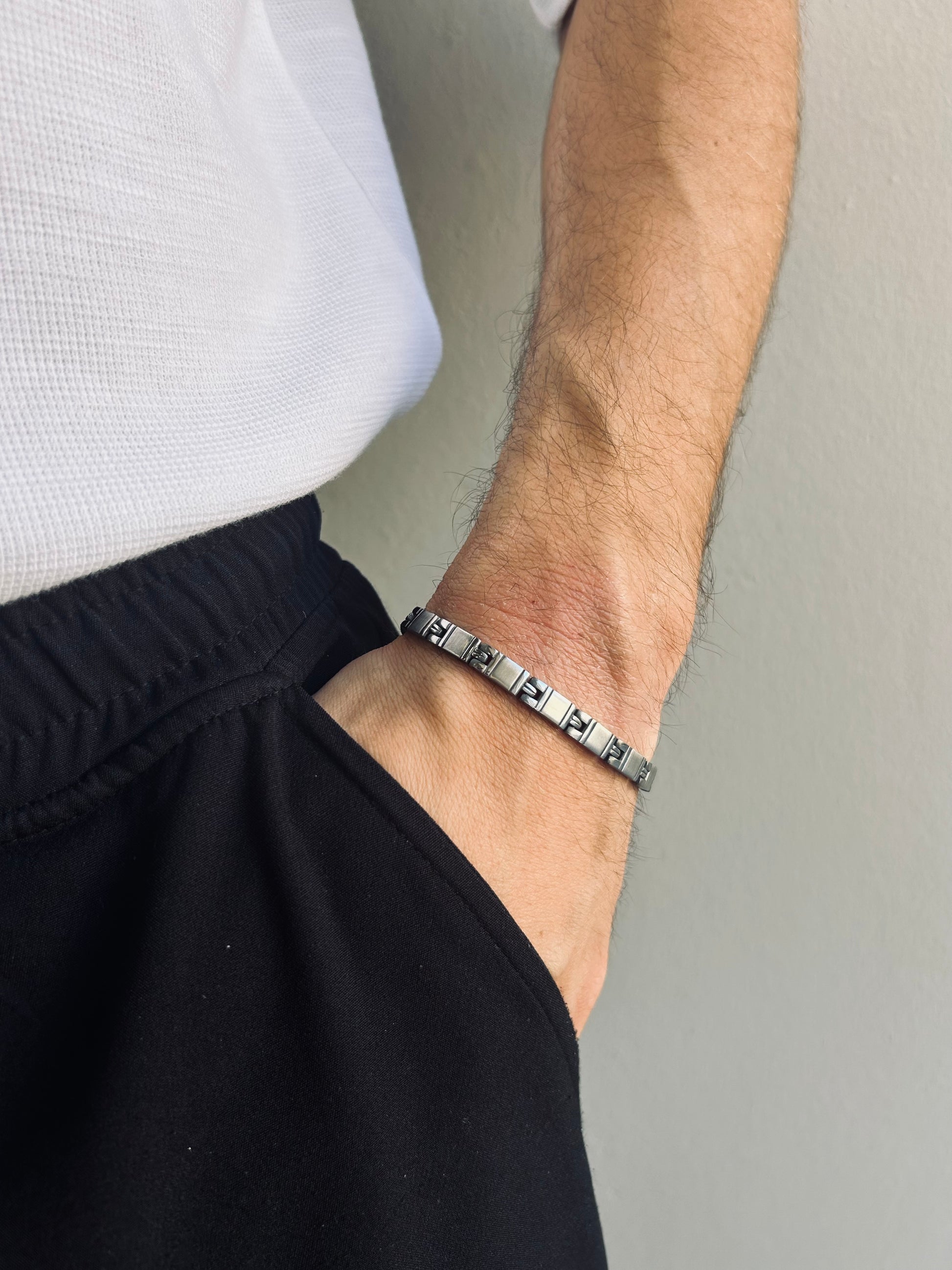 Ασημί χειροπέδα από υψηλής ποιότητας ατσάλι 316L(χειρουργικό ατσάλι).