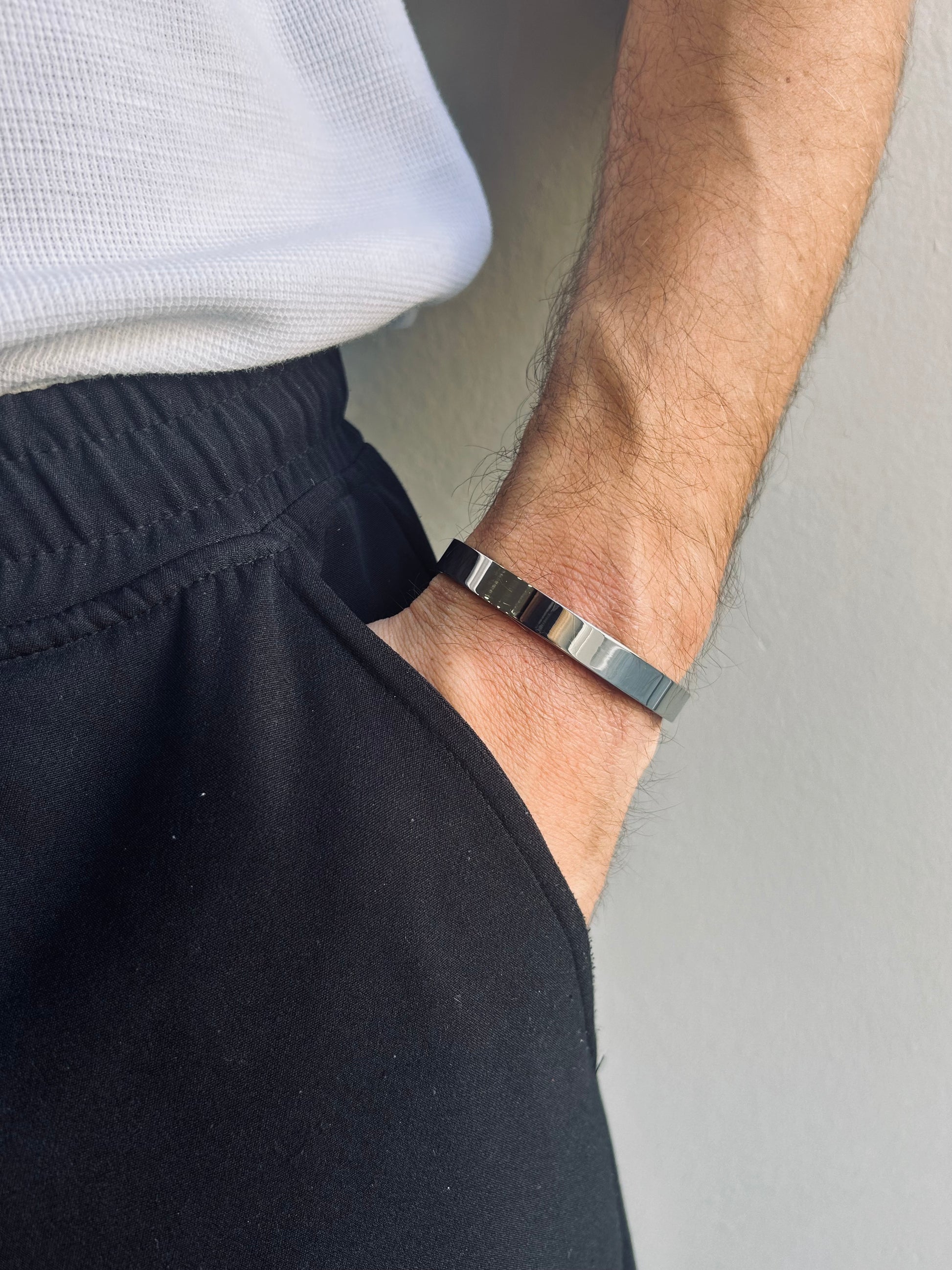 Ασημί χειροπέδα από υψηλής ποιότητας ατσάλι 316L(χειρουργικό ατσάλι).
