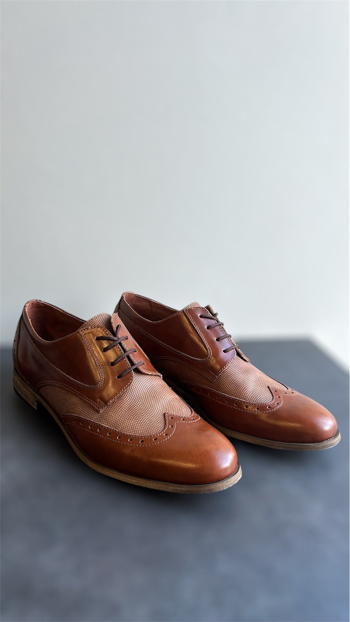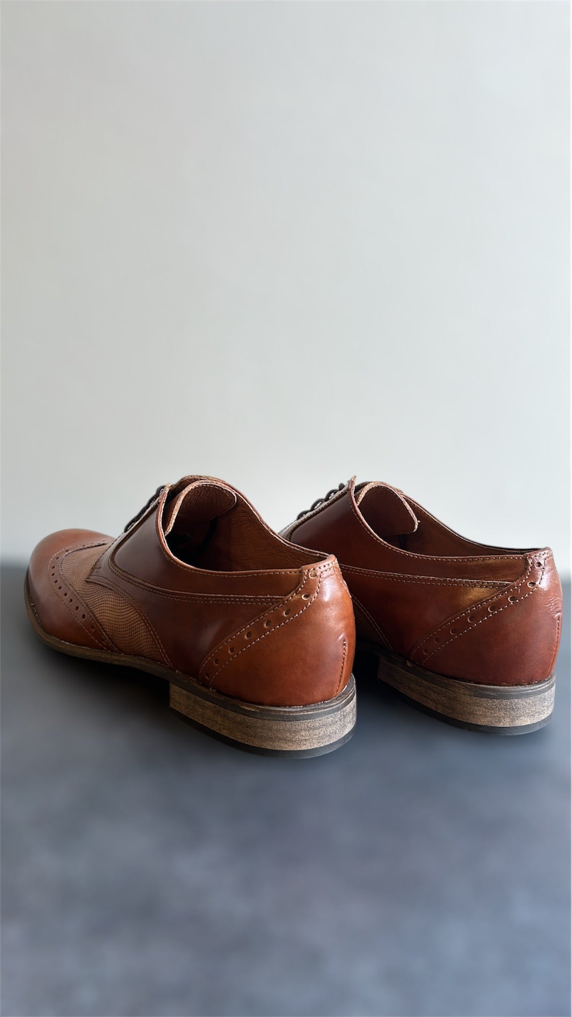 Καφέ δερμάτινο σκαρπίνι με κορδόνια.Ελληνικής παράγωγης