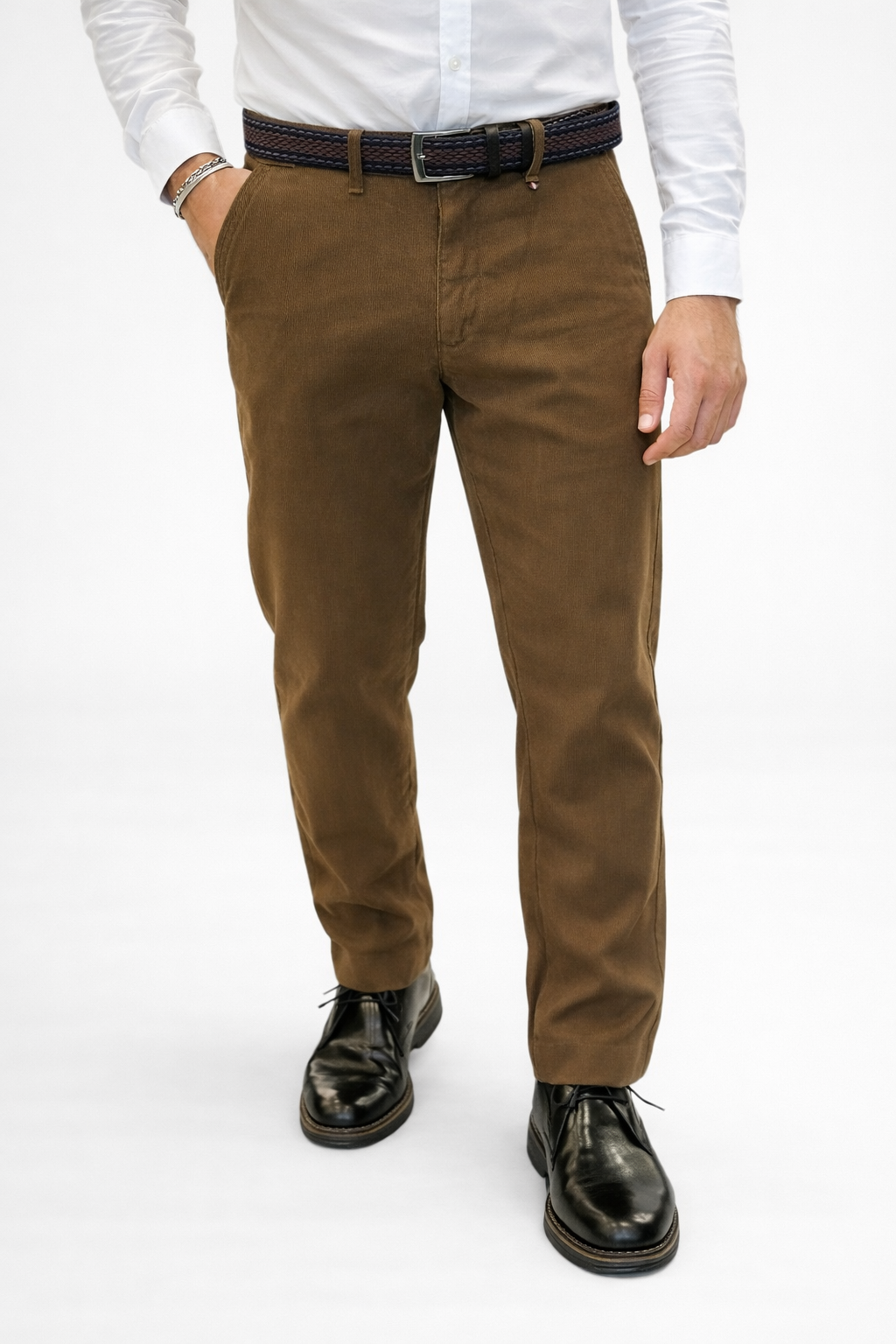 Ανδρικό Παντελόνι Chinos με πλεκτή δερμάτινη ζώνη