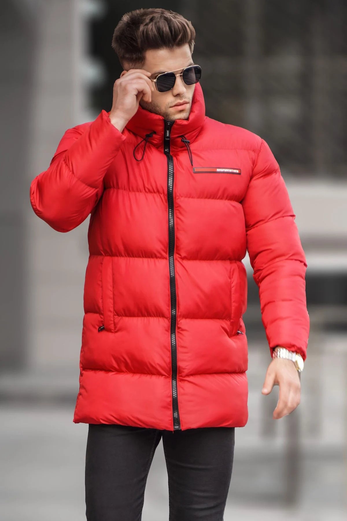 Μπουφάν πάφερ σε κόκκινο χρώμα με τελείωμα κάτω απο τη μέση.