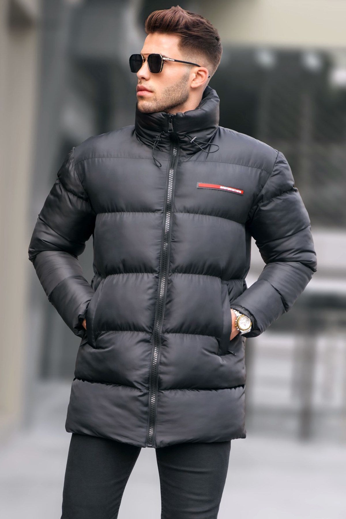 Μπουφάν πάφερ σε μαύρο χρώμα με τελείωμα κάτω απο τη μέση.\